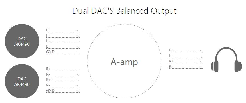 当然のごとく、音質面でもかなりのこだわりが投入されている。音質の要となるDACは、旭化成エレクトロニクス社の32bitプレミアムDAC「VERITA AK4490」をLR独立で搭載。加えて、32bit処理をおこなうCPUを採用することで、32bit音源であってもそのままのクオリティでDACまで伝送し、理想的なサウンドを引き出すことができるようになっている。対応するスペックは、リニアPCMで最高384kHz/32bit、DSDで最高11.2MHzまでと、充分以上の内容を持つ。さらに、アンプ部についても、専用のバランス出力回路を再設計して搭載するなど、徹底した低歪化や音質向上を推し進めているという。