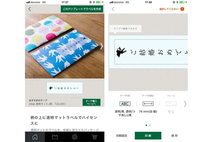 専用アプリも新モデルに対応する仕様に進化し、「整理収納」「書類整理」「ネーミング(名前付け)」「ギフトラッピング」の4カテゴリーに加え、お店の装飾からテイクアウト品のラッピングラベルまで、簡単におしゃれなラベルが作成できる「ショップラベル」と、画像やURLを紐づけたQRコードラベルが簡単に作成できる「シェアラベル」テンプレートが追加されている。