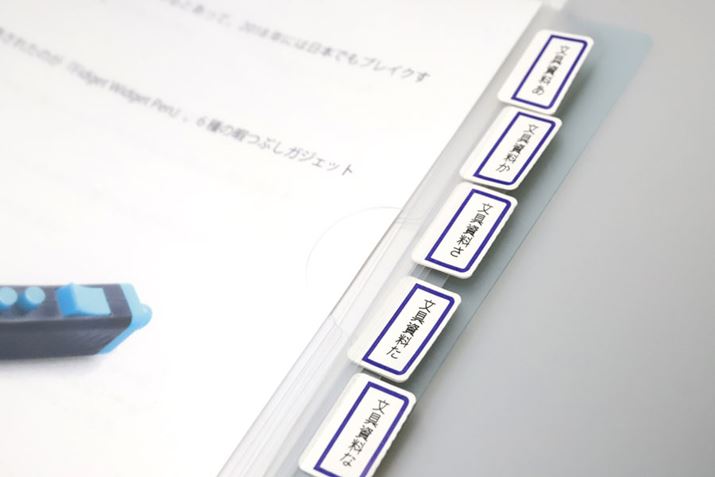 「タイトルブレーン2」で「タックインデックス」に印字。ファイルの見出しインデックスが美しく作れるのがポイント