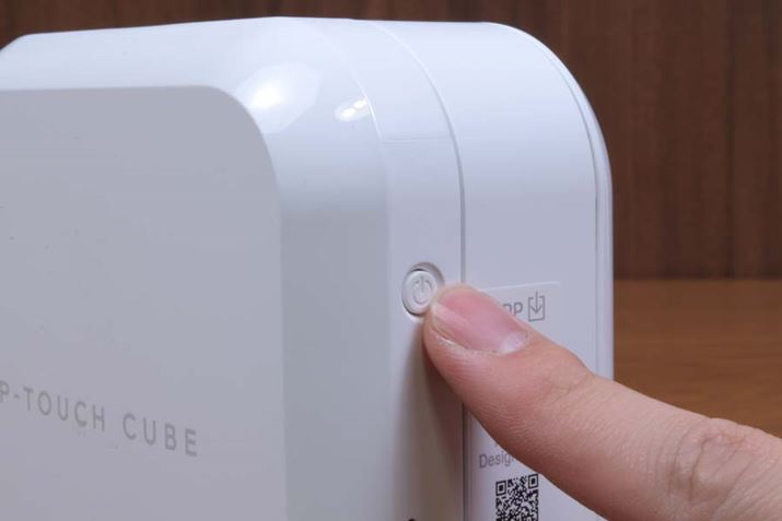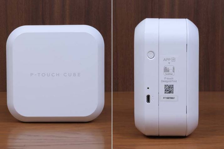 「ピータッチ キューブ」には液晶画面も文字入力用のキーボードもなく、ラベル作成はすべて専用アプリ「P-touch Design&Print」(iOS/Android両対応)をダウンロードしたスマートフォンから行う。その分本体はコンパクトで、スクエアフォルムはいい意味で事務用品然としておらず、「見せる収納」もできそうなデザインだ。机の上に置いておいても違和感がない。
