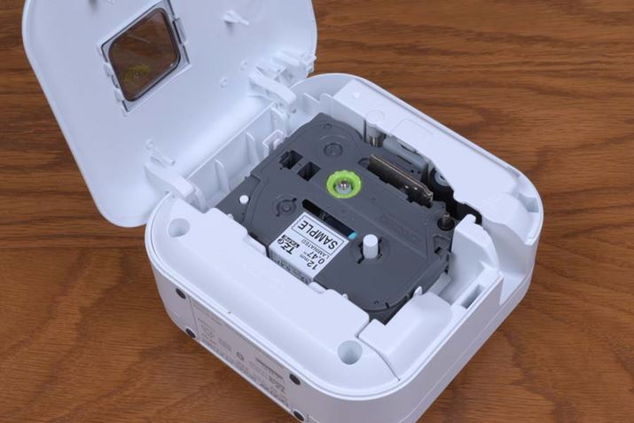 裏面のフタを開けて、専用の「TZeテープカセット」をセットする。印字可能なテープ幅は、3.5、6、9、12、18、24mm。幅が広め(24mm)のテープにも対応するので、視認性の高いラベルが作れるだけでなく、デザインの幅も広がる
