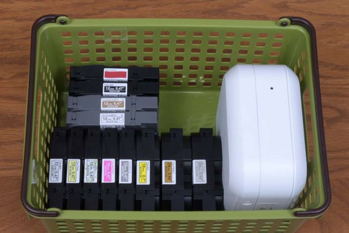 ラベルライターのメインの用途は整理整頓。それだけにラベルライター自体が場所を取ってしまうようではちょっと残念だが、コンパクトな「ピータッチ キューブ」なら大丈夫。テープとまとめてスッキリ保管しておける