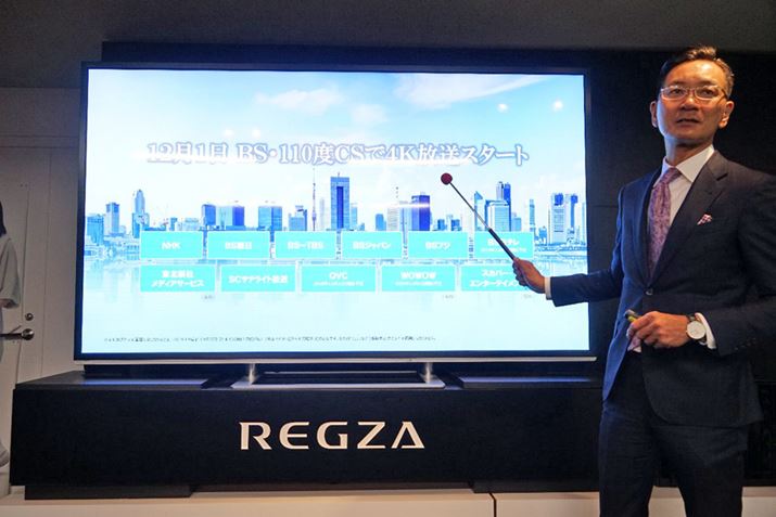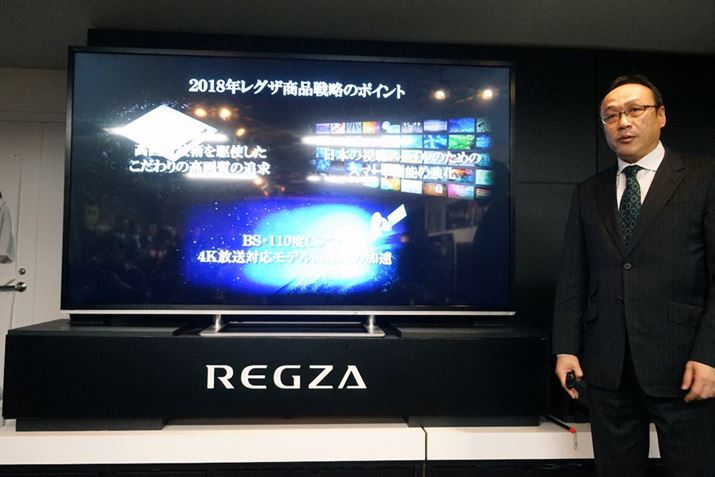 製品説明に先立ち挨拶に立ったのは東芝映像ソリューションズのVS第一事業部事業部長の尾蔵靖英氏。「1月から事業部長に着任し、3月に会社のオーナーが代わり、そして2018年12月には新4K BS/CS放送もスタートし、放送インフラも生まれ変わる。この生まれ変わる世界を浸透させて、攻めの製品戦略を手がけていく」と、改めてREGZAブランドの薄型テレビを展開していく意気込みを語った。