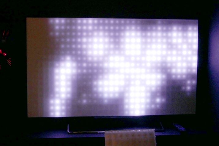 パナソニックの液晶テレビ“VIERA”の直下型多分割駆動のデモ。夜空に浮かぶ花火を表示しているときのバックライトの状態だ。画柄が想像できるだろう