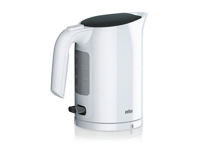 世界最大級のデザインコンペ「PLUS X AWARD」で、2016年度「デザインチーム・オブ・ザ・イヤー」を受賞したブラウン ハウスホールドデザインチームが手がけた電気ケトル。ブラウンのデザインポリシー「The Strength of Pure」を表現したモデルになっている。