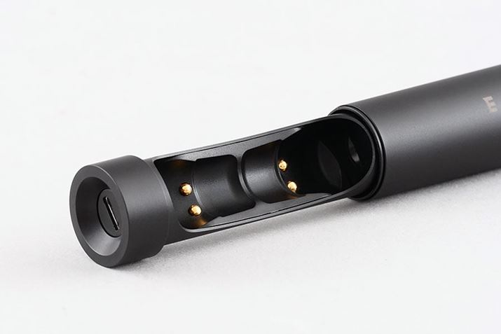 完全ワイヤレスイヤホンにはたいてい、充電器を兼ねた収納ケースが付属している。EARINではこれを「カプセル」と呼んでいるが、このカプセルのデザインを変更。「EARIN M-1」で好評を得ていたスティック型はそのままに、イヤホンの取り出し口に向かって細くなる形状となり、手に持ったときのホールド感がアップしている。