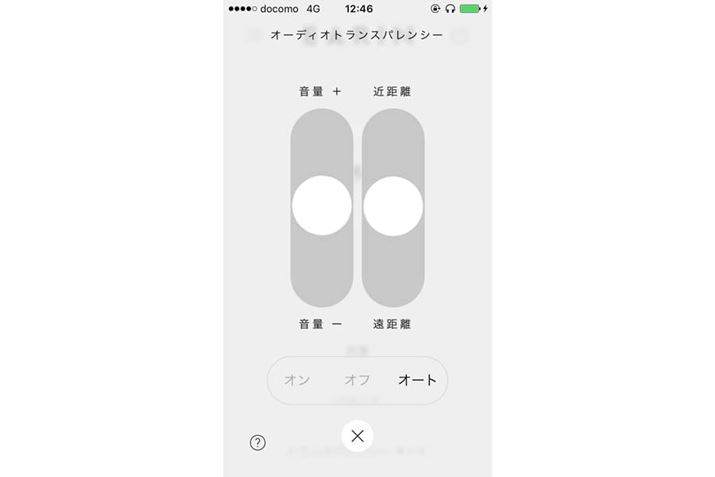 後述する専用アプリ(Android/iOS対応、いずれも無料)を使えば、トランスパレンシー機能のオン/オフができるほか、取り込んだ音のボリューム調整や、マイクの指向性(近距離〜遠距離)を細かく調整することもできる