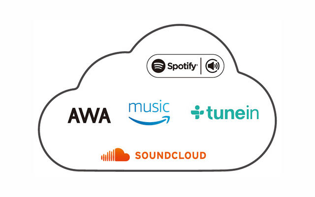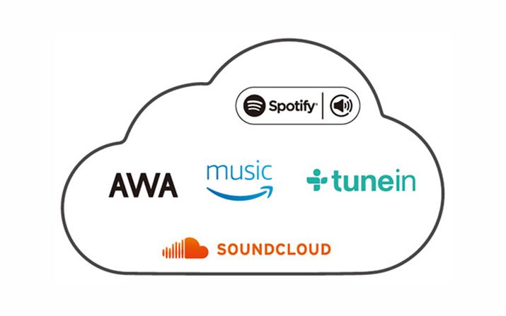 Wi-Fi機能を内蔵し、「AWA」や「Spotify」、「Amazon music」といった音楽ストリーミングサービスにサウンドバー単体で対応
