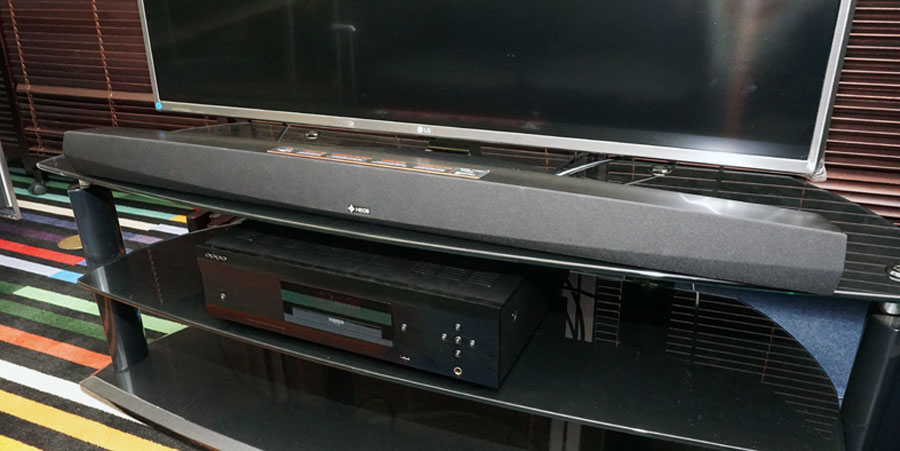 手軽ながらも存分に迫力あるシアターサウンドが楽しめる製品として人気のある“サラウンドバー”タイプのスピーカー。“一体型フロントスピーカー”などとも呼ばれ、一時期はかなり注目を集めていたこのカテゴリーの製品だが、近年また、売れ行きが好調になってきているという。エントリーから上級クラスまでさまざまなラインアップが出そろったことやデジタルサウンドシステムの進化による音質の向上、シアターだけでなく音楽コンテンツも楽しめる多機能製など、好評を博しているポイントはいくつか想定できるが、そういった“魅力”をいくつも持ち合わせている“最新サラウンドバー”の代表格といえる製品が登場した。それが、デノンの「HEOS HomeCinema」である。