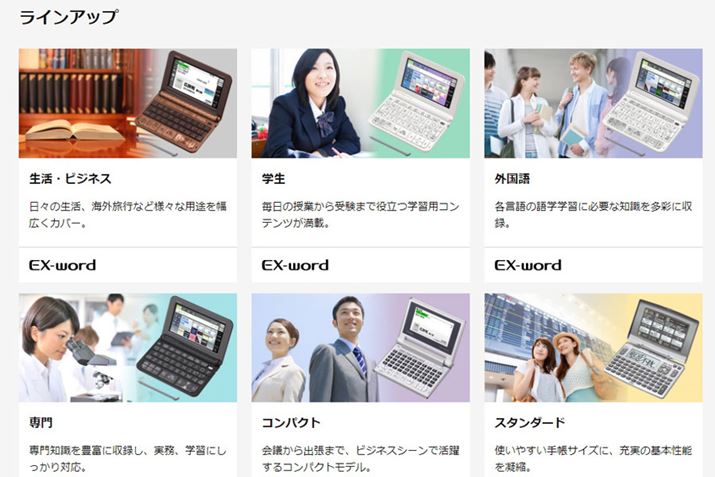 カシオ計算機の電子辞書ブランド「EX-word」の公式ホームページ。ひとつのブランドの中にも、実に多彩なジャンルの電子辞書がラインアップされている