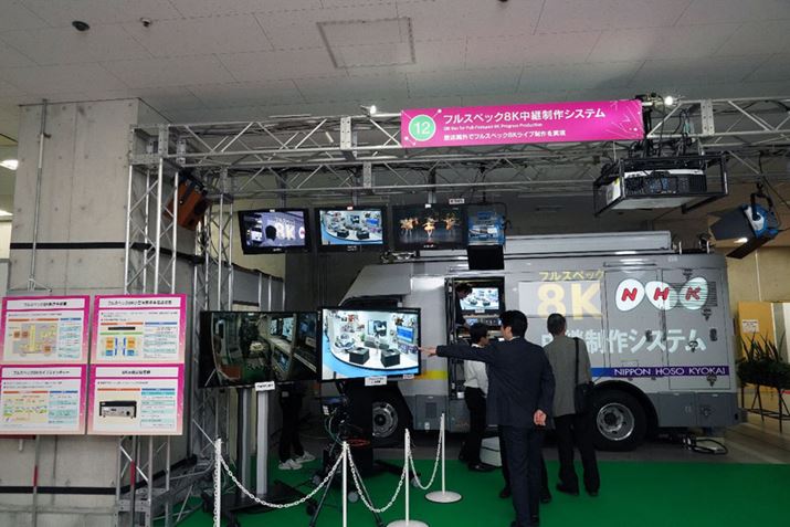 8K/120Hz放送の開始(今年12月の放送は8K/60Hzが予定されている)に向けた開発では、世界初の「8K120Hz映像符号化・複合装置」も披露。4Kエンコーダー12台で100Mbpsにエンコード処理を行う。実用化は2020年頃がターゲットとなる見込みだ。8K/120Hzに向けた番組制作システムも開発が進行中しており、8K放送に向けた環境づくりも本格化している。