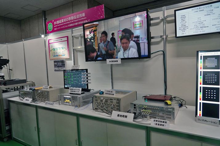 展示では新しい誤り訂正符号の採用や信号構造の見直しなどにより、大幅に性能が向上した暫定的な伝送方式を策定。MIMO伝送を用いた方式では1チャンネルあたりの伝送容量を62.8Mbpsに引き上げる事ができ、次世代の符号化コーデックと組み合わせれば地デジで8K SHV放送も視野に入る。