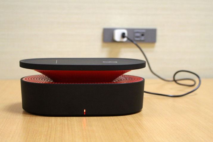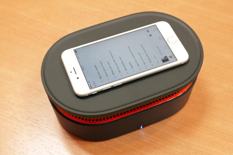 まずは、何の設定もせずに置くだけでBentoから音が出てくることにビックリしました。ただし、スマホに内蔵されたスピーカーの位置がBento内蔵のセンサーが電磁波を捉えられる位置と合わないと、音がまったく出ません。筆者の場合は、たまたま最初に置いた場所がよかったためか、すぐに音が出て何の問題もありませんでしたが、最初に本商品を使う際にはベストポジションを探す必要がありそうです。筆者はiPhone 6sしか持っていないので、iPhone 6sでの印象になりますが、音の広がりは抜群です。音質的にはスマホより低音が強く感じられました。全体の印象としてはややこもった感じにはなりますが、大きな音で再生できるので、部屋中にタップリと音楽を流して楽しめます。