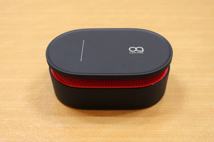 こちらが本体。シンプルでおしゃれな幾何学デザインが印象的です。商品名になっている「Bento」ですが、日本のお弁当箱からヒントを得たとのこと。見ようによっては、「お弁当箱」に見えなくもないかな。筆者はブラック/レッドを購入しましたが、ホワイト/グリーンもあります