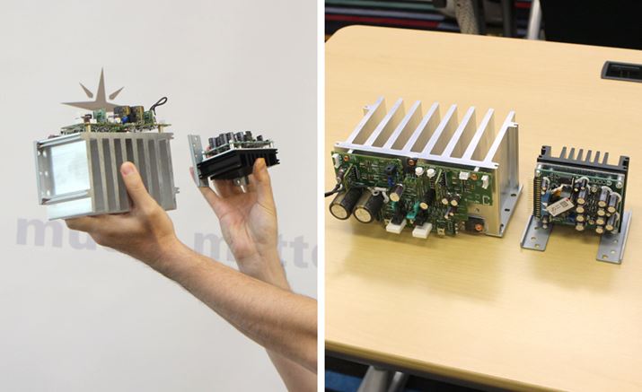PM-10のパワーアンプ基板と比較すると、PM-12のほうはかなりコンパクト化しているのがわかる。基板が薄型化したため、どのように接続するのが最適であるか、ゼロベースで考え出した結果が“ダイレクト接続”であったという