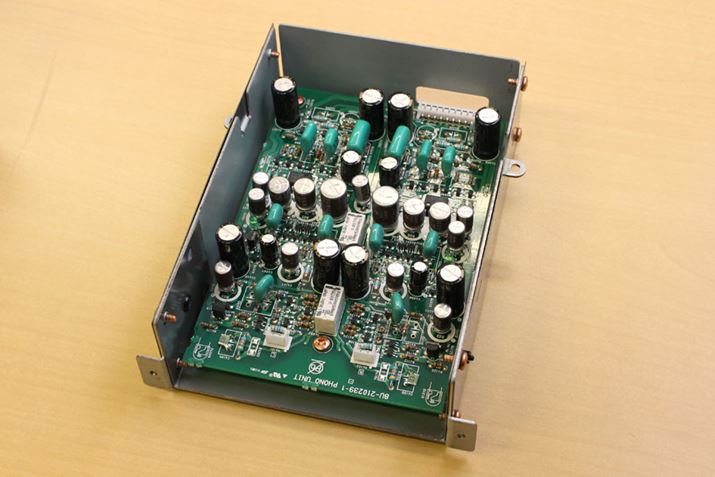 フォノイコライザー基板は、スチール+ケイ素鋼版のシールドケースに収め、外来ノイズの影響を受けないように工夫