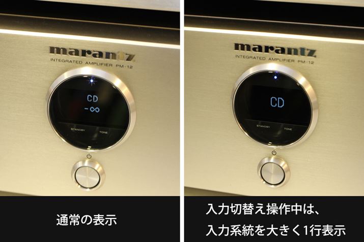 続いて、PM-12をご紹介しよう。本機は、アナログプリアンプとスイッチングパワーアンプを組み合わせたプリメインアンプ。マランツはこれまでにも、ワイドレンジで分解能の高い近代のスピーカー製品に対応できるプリメインアンプの実現を図り、スイッチングアンプ(クラスDアンプ)を採用した開発を行ってきた。PM-12もその流れを汲むモデルとなる。