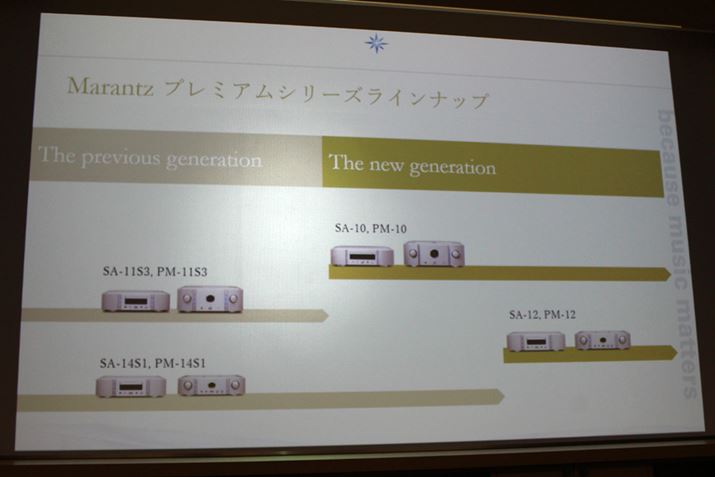 マランツのプレミアムHi-Fiシリーズラインアップ一覧。SA-10/PM-10に続く次位モデルとして、SA-12/PM-12が追加された形となる