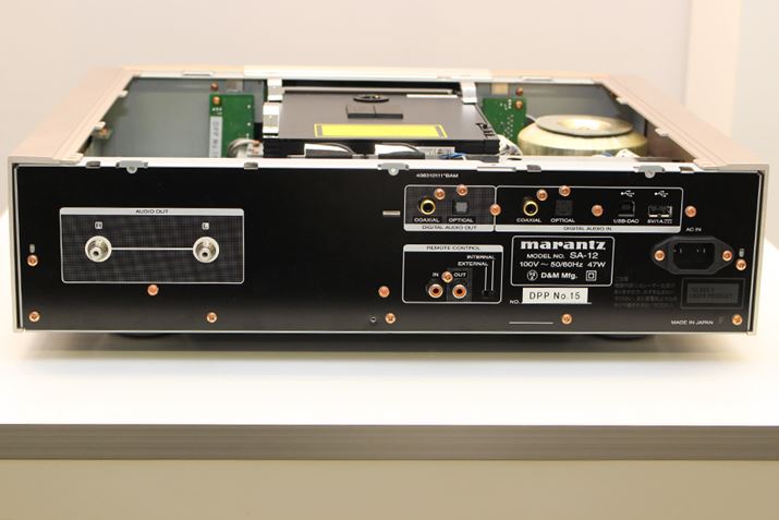 まずはSA-12から。本機は、USB-DAC機能を搭載するSACDプレーヤーだ。メカエンジンは、上位機種SA-10と同じオリジナルの「SACDM-3」を採用。USB-DAC部の対応スペックもSA-10と共通で、最大384kHz/32bit PCMおよび11.2MHz DSDまでの入力ソースに対応する。