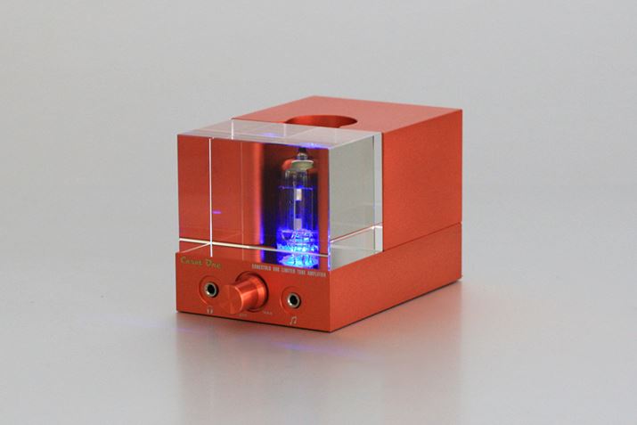 イタリア・ナポリ生まれのオーディオブランド、Carot One(キャロットワン)から登場したコンパクトなプリメインアンプ。オレンジ色のアルミ製筐体とクリアガラスブロックによって構成されたボディの美しさ、76(幅)×75(高さ)×150(奥行)mm(突起物含む)という小型サイズが特徴だ。