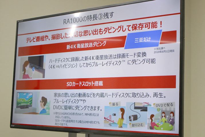 三菱電機がディスクレコーダーを搭載した一体型テレビを世に送り出したのは、2009年のこと。それからずっと、REALシリーズはオールインワンで使いやすいテレビとしての地位を築いてきた。今回のRA1000で、2018年12月のBS/CS 4K放送を前に、全部入りの使いやすい4Kテレビとして新しい優位性を打ち出してきた形だ。
