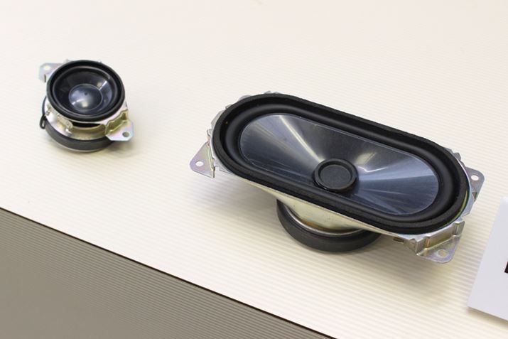 こちらがスピーカーユニットの実物。左がツイーター、右がウーハーとなる。カーボンナノチューブ配合のNCV振動板によって、チタンに匹敵する高い伝播速度と紙同等の適度な内部損失を両立するという独自開発構造
