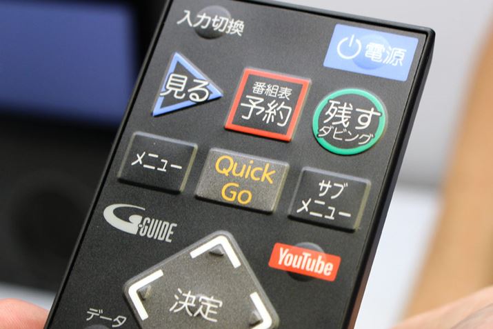 そのほか機能面では、リモコンに搭載されている「Quick Go」(クイックゴー)ボタンにも注目したい。このボタンを押せば、テレビ視聴中の画面の端に、録画番組の一覧や裏番組のリストを表示させることができる。これにより、録画番組や裏番組へスマートに切り替えることが可能だ。