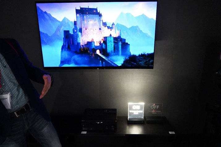 パナソニックは、薄型テレビこそ夏発売の「FZ1000」「FZ950」のままだったが、関連する出展としてUltraHD Blu-rayプレーヤーの最新モデル「DP-UB9000」(ドイツ版の型番は「DP-UB9004」)を初披露。映像処理エンジンには「HCX」プロセッサーを搭載し、マルチタップ処理によるクロマアップサンプリング処理に対応。「HDR10+」「DolbyVision」とメタデータ付きの映像回路信号をすべてサポートするなど、UltraHD Blu-rayプレーヤーの決定版とも呼べるモデルに仕上がっている。