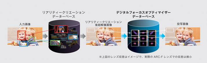 また、2Kコンテンツを高精細な4Kにアップコンバートする超解像処理についても、従来の「データベース型超解像処理LSI(リアリティークリエーション)」に加え、「デジタル フォーカス オプティマイザー」と呼ばれるデジタル処理で解像感(MTF)を高める処理を新たに追加。光学的な劣化を事前に補償する信号処理や画像のパターンを解析して最適な補正を行うことで、より高品位な4K映像の生成を実現したという。