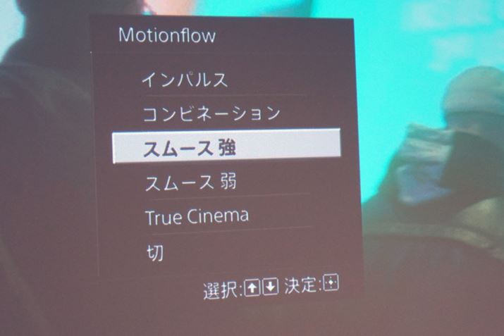 「VPL-VW555」の「4Kモーションフロー」は、上位モデルの「VPL-VW855」や「VPL-VW745」と同じ5種類から設定可能だ