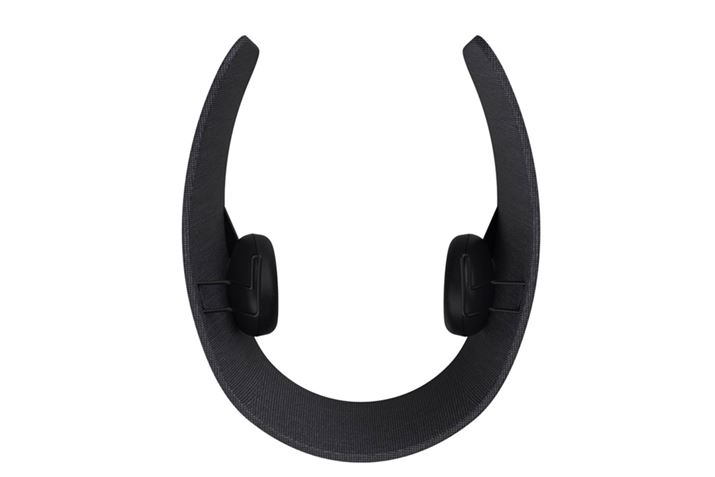「WEAR SPACE」は、2つの密閉型ヘッドホンで両耳を挟んで使用するが、左右から後部を回るヘッドバンドを採用。一般的なヘッドホンに用いられているヘッドバンドに比べ、頭頂部に圧迫感がない快適な装着感を実現している。