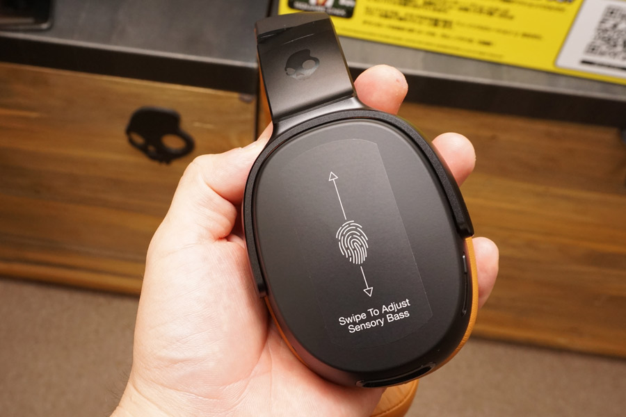 「Crusher 360」。ブラックカラーの筐体にキャメルカラーのイヤーパッドを組み合わせたクールなデザインだ