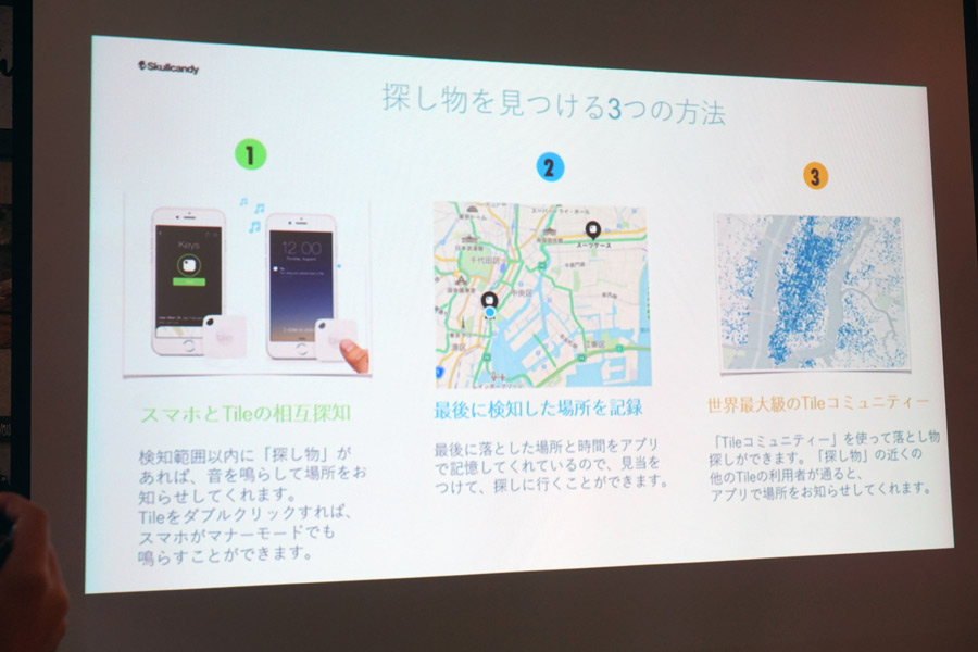 また、ノイズキャンセリング機能以外では、ヘッドホンとして世界で初めてスマートトラッカー「Tile」を搭載したのもポイント。スマートフォンとBluetooth接続し、「Tile」の専用アプリであらかじめセッティングしておくことで、単体の「Tile」で提供されている機能同様に、「アプリからヘッドホンを鳴らす」、「最後に検知した場所を地図で示す」、「Tileコミュニティーでヘッドホンを探す」といった機能が利用できる。