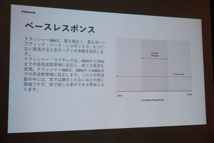なお、今回の試聴はスマートフォンとの有線接続で行ったが、「Crusher 360」ではBluetooth接続時のコーデックに従来のSBCに加え、aptXも加わっているという。音質面はもちろんだが、接続時の遅延もSBCに比べて少なく、リップシンクの問題もクリアできるので、映像コンテンツやゲームコンテンツと組み合わせてもしっかりと使えそうだ。