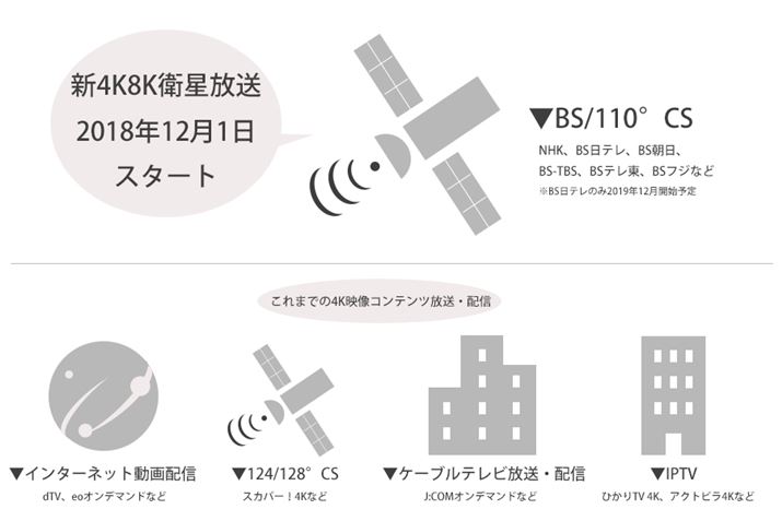 BS/110°CS衛星放送波を用いた「基幹放送」として新しい4K/8K放送が加わる!