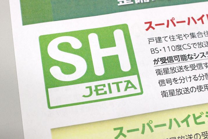 なお、アンテナ、ブースター、屋内配線を左旋対応品に交換する際は「SH」マークが目印になる。SHは「Super Hi-Vision」の頭文字で8Kを意味しており、8K放送がきちんと受信できるアンテナ、ブースター(増幅器)、分配器、壁面端子、混合器・分波器として、その性能がJEITAで審査・登録されたものに付与される認証マークである。「SH」マークを目印に選べば安心というわけだ。