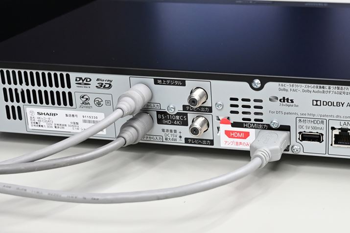 BS4K・110度CS4Kのアンテナ端子は2KのBS・110度CSと共通。ちなみに、従来機種のアンテナ端子は、BS4K・110度CS4Kのパススルーに対応していないため、レコーダーを複数台接続する場合は、一番手前に新製品を置く必要があるそうだ