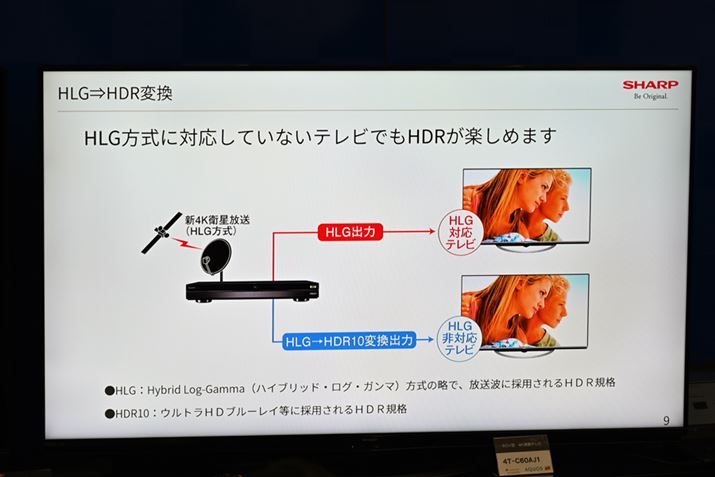 また、新4K衛星放送のHDR規格は、Ultra HD Blu-ray(UHD BD/4Kブルーレイ)で採用されている「HDR10」ではなく、「HLG」(Hybrid Log-Gamma/ハイブリッド・ログ・ガンマ)となっている。4Kテレビ黎明期の製品だと、HDRはHDR10のみサポートしているというモデルも少なくないが、新製品ではレコーダー側でHLG→HDE変換に対応しているので、万が一HDR10しか対応していないテレビだったとしても、HDRの効果を楽しめるので安心だ。