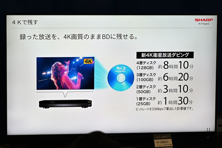 新4K衛星放送をブルーレイに保存することも可能。ただし、録画したディスクは現時点では同社の新4K衛星放送対応レコーダーのみ再生できる仕様だ