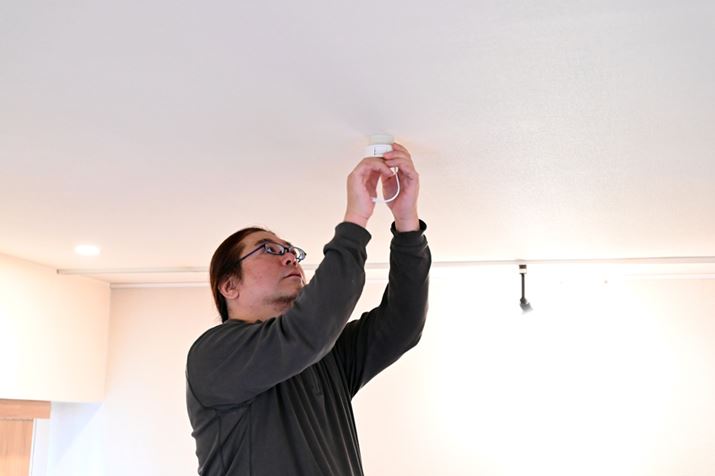 天井照明のソケットに天井との接続パーツを取り付け、その上から本体を取り付ける。最後に本体ライトカバーを取り付ければ完成だ