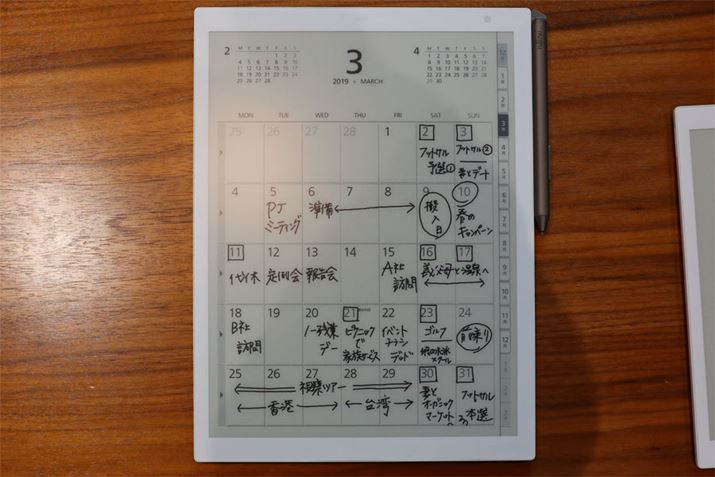 実は、電子ペーパーのハードウェアは、ソニーが昨年発売したデジタルペーパー「DPT-RP1」と同じ。機能も似ているが、ビジネスパーソンがよく使うスケジュール機能を盛り込んで差異化を図っている。今後もユーザーの声を聞きながら、機能をブラッシュアップしていきたいというが、どのような製品に成長していくのか注目したい。