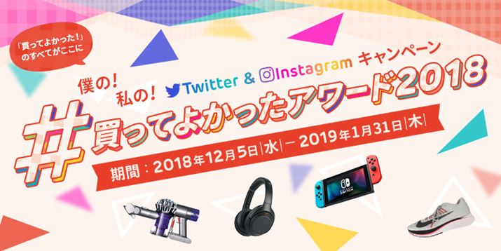 さて、価格.comでは毎年恒例の「価格.comプロダクトアワード 2018」の公開を記念して、「#買ってよかったアワード2018」というキャンペーンを実施中です。TwitterまたはInstagramにて、今年買ってよかったものの写真や動画にコメントを添えて投稿していただいた方の中から抽選で10名様に今年のプロダクトアワード受賞製品をプレゼント。気になるプレゼントや詳しい応募方法はキャンペーンサイトをご覧ください。