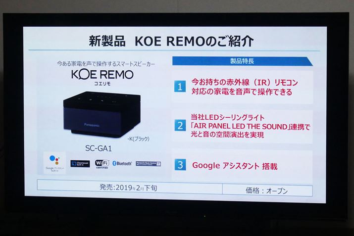 パナソニックは、スマートスピーカー「コエリモ」と、スピーカーを搭載するLEDシーリングライト「AIR PANEL LED THE SOUND」の新モデルを2月下旬から発売します。「コエリモ」は、Googleアシスタント対応に加えて赤外線リモコン機能を内蔵するスマートスピーカーで、エアコンやテレビ、照明といった家電を音声で操作できます。