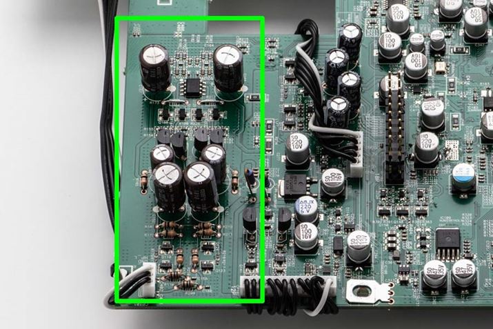 ローパスフィルター回路には、本機のためにチューニングを施したという専用設計のOFC線とマンガン亜鉛コアによるインダクター、高音質フィルムコンデンサーを採用。PWMプロセッサーには専用電源を配置し、従来モデルと比較して低ノイズ化を実現している