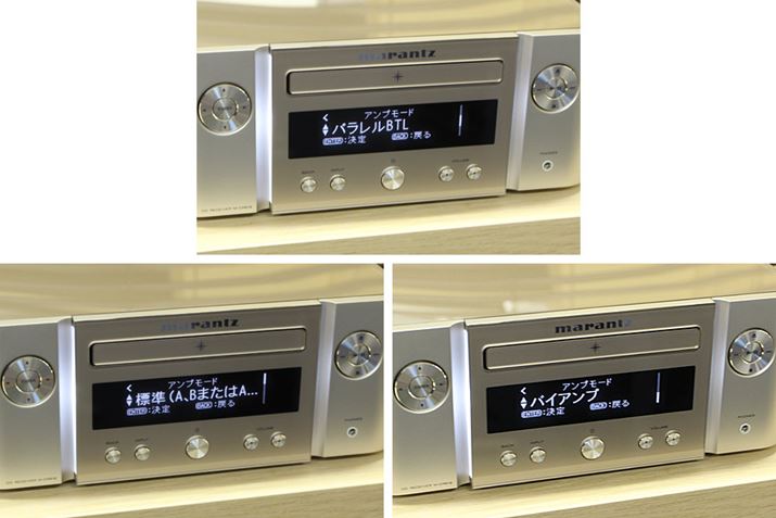 というわけで、アンプモードは「標準」「パラレルBTL」「バイアンプ」の3モードを搭載。設定はメニューから行う。デフォルト設定は「標準」になっているが、電源をOFFにしても最後に使用したモードのまま設定が保存される。シングルワイヤー接続する場合は「パラレルBTL」に、バイワイヤー接続する場合は「バイアンプ」にしておくのがよさそう