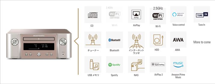 さらにアップルのワイヤレス再生機能「AirPlay 2」にも対応するほか、Amazon Music、AWA、Spotifyといった音楽ストリーミングサービスの再生にも対応。加えて、スマートスピーカー「Amazon Alexa」と連携し、音声での操作も行えるようになっている。シリーズ最新モデルとして、この3年半の間に登場した新しいネットワーク機能やサービスへの対応を果たした形だ。