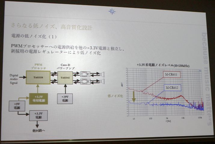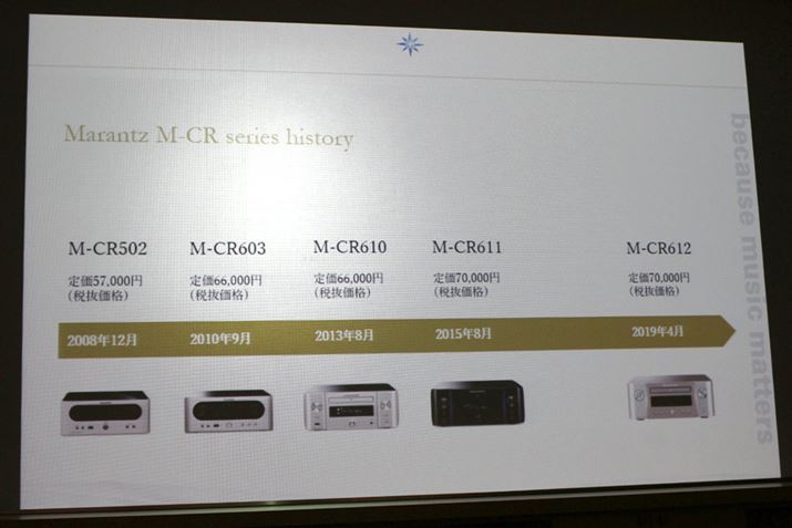 新モデルM-CR612の特徴を簡単に言うと、そんなM-CR611の魅力を継承しつつ、音質と機能の両面で強化されていることだ。この3年半の間に大きく変わったオーディオシーンに対応すべく、進化を遂げている。