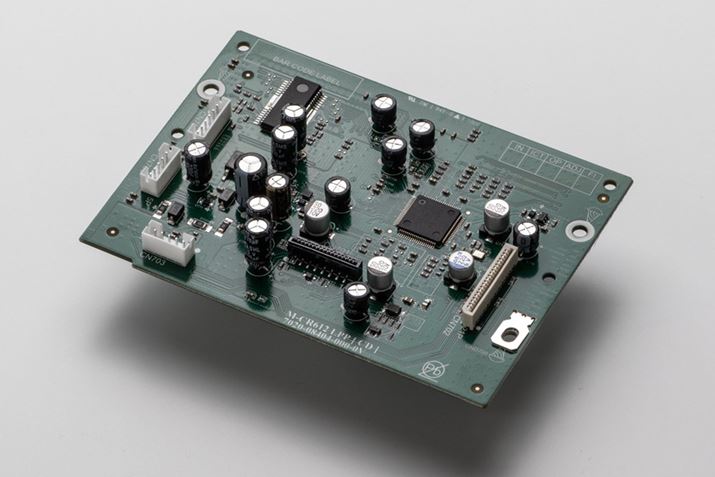 内部は左右チャンネルの音質差を排除するために、グラウンドラインも含めたオーディオ回路を左右対称にレイアウト。基板上のグラウンドラインを最適化し、同社のSACDプレーヤー「SA-12」と同等の超定位相雑音クロックを搭載するなど、デジタル回路動作を高精度化している(写真はクロックを搭載するCD基板)