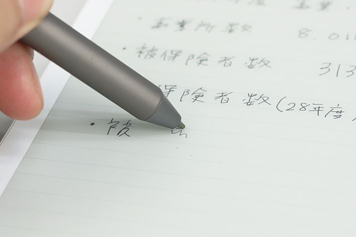 適度な摩擦感があり、本物の紙とペンに近い感覚で書き込めます。タブレットのようなツルツルと滑りすぎないのがいいところ