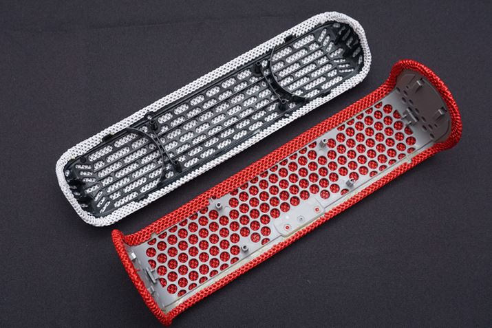 新モデルと前モデルのグリルフレーム。前モデルがグリルフレーム全体で開口部の形状が同じなのに対し、新モデルは場所によって形状が異なることがわかる